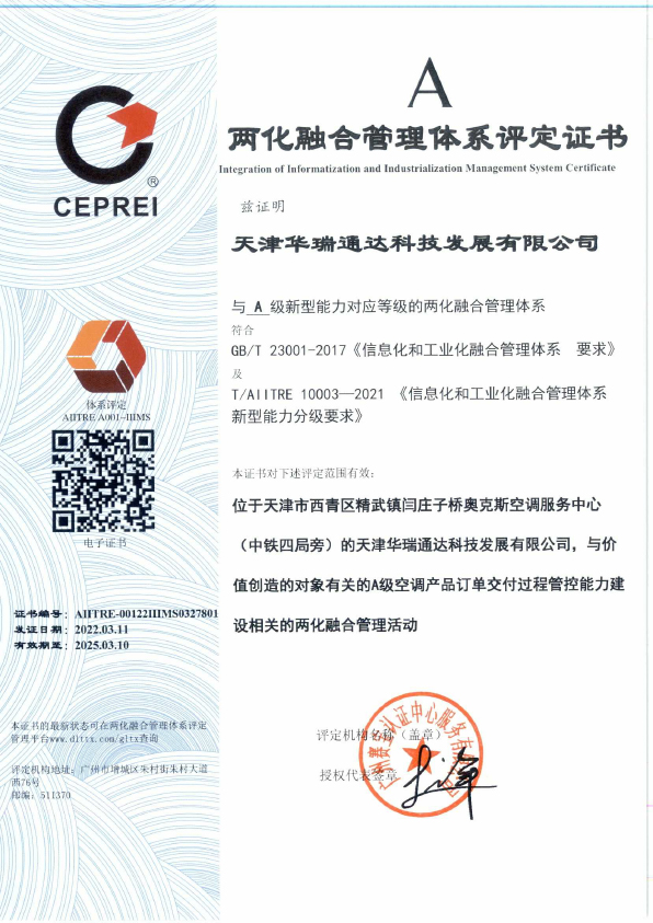天津制冷空调设备维修安装企业能力等级证书